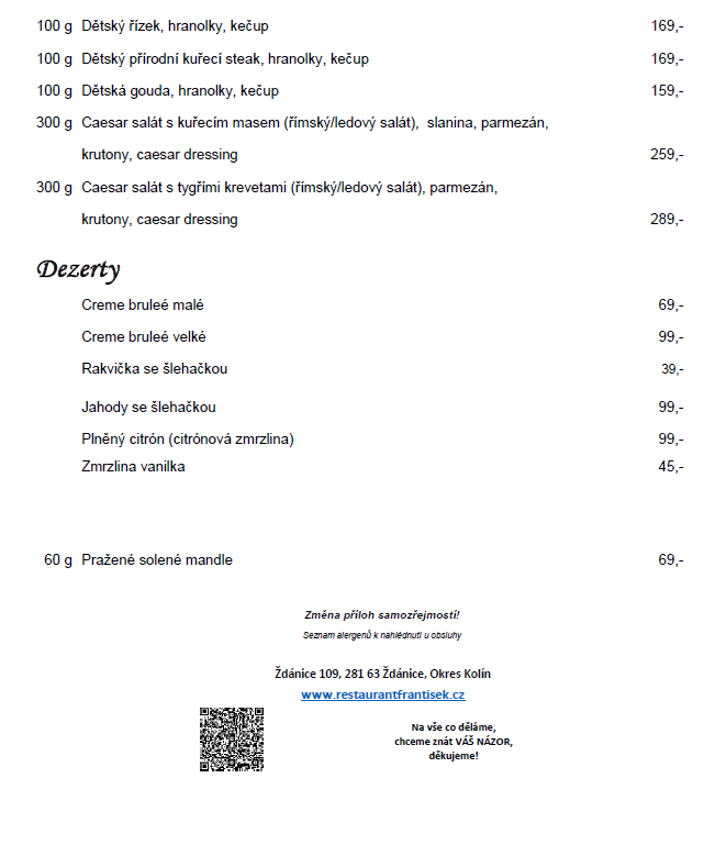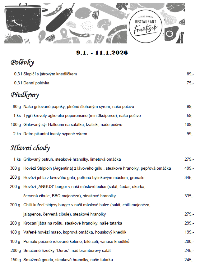 | Pátek | Zelňačka | 60,- |